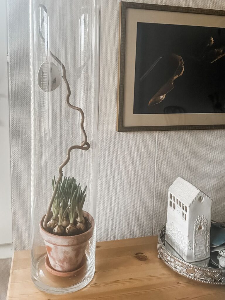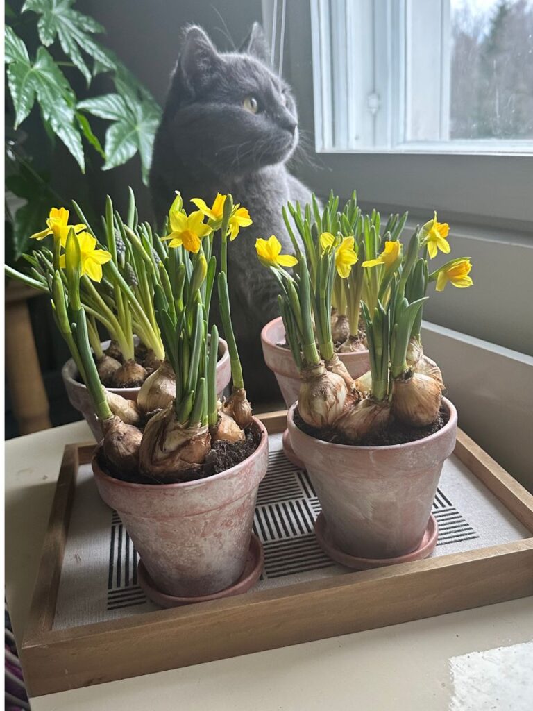 Ja koska meillä on kaksi kissaa, piti myös keksiä mihin kukat saa laitettua niin että saavat olla rauhassa. Tällaisia ratkaisuja tuli.